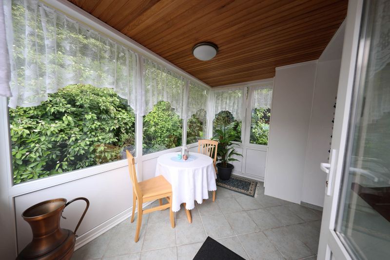 Im Eingangsbereich des Erdgeschosses befindet sich der Wintergarten, ausgestattet mit Tisch und Stühlen. Links geht es von der Diele ins Bad (mit Dusche, WC und Waschmaschine), rechts geht es in die Küche. Diese ist ausgestattet mit Spülmaschine, Mikrowelle, Nespresso Maschine, Kaffeemaschine, Toaster, Wasser- und Eierkocher und allem, was zum täglichen Gebrauch benötigt wird.